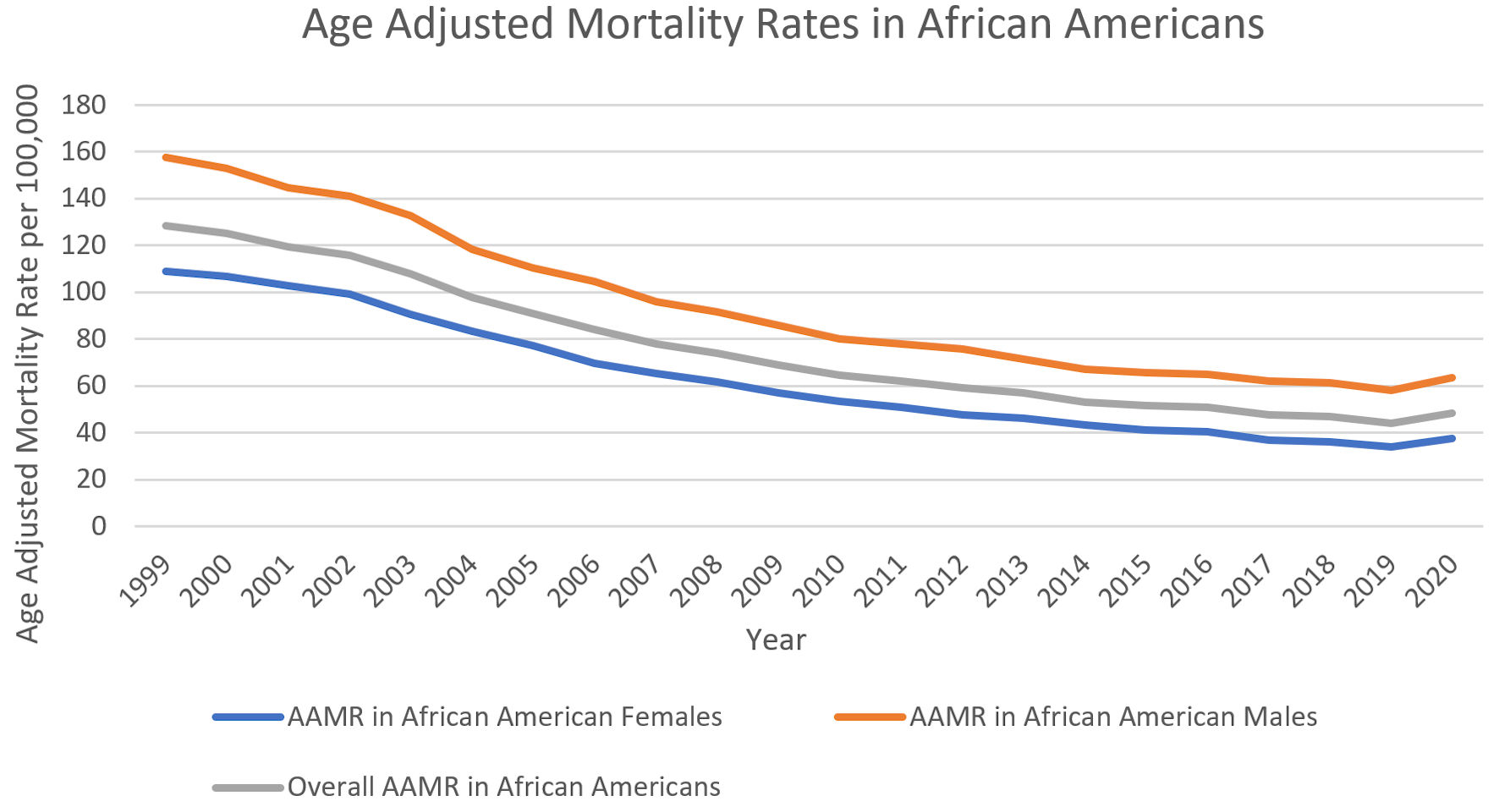 ![]() Click for large image | Figure 3. Age-adjusted mortality rates (AAMRs) in African Americans. |