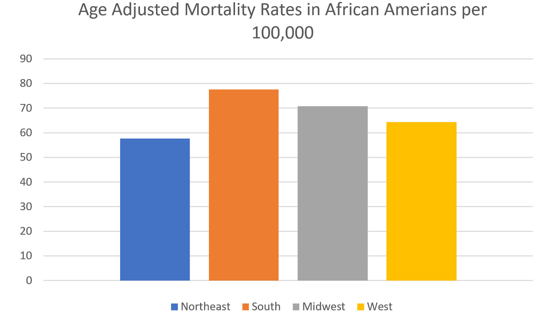 ![]() Click for large image | Figure 4. Age-adjusted mortality rates among African Americans in different regions in the United States. |