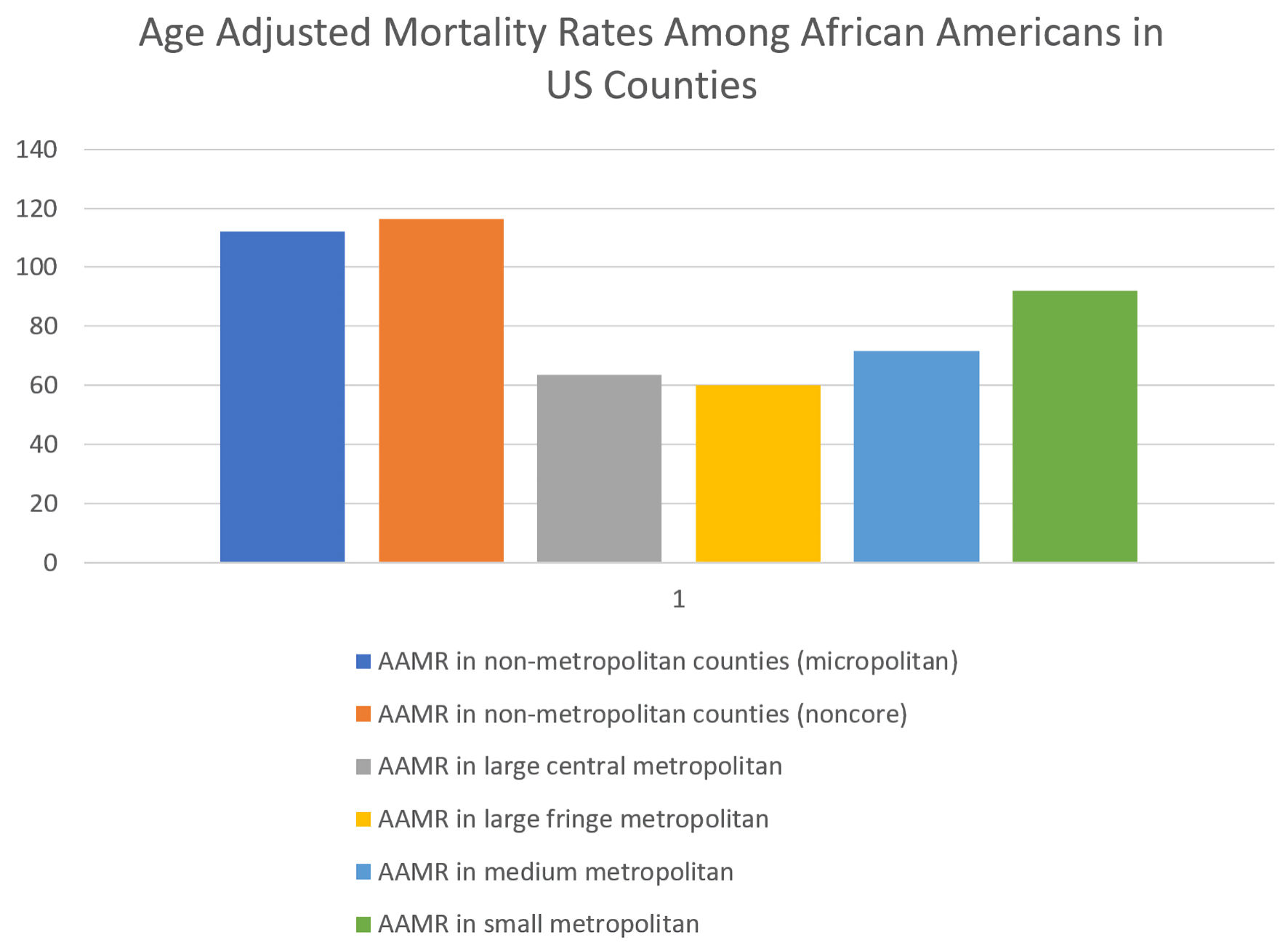 ![]() Click for large image | Figure 5. Age-adjusted mortality rates (AAMRs) among African Americans in US counties. |