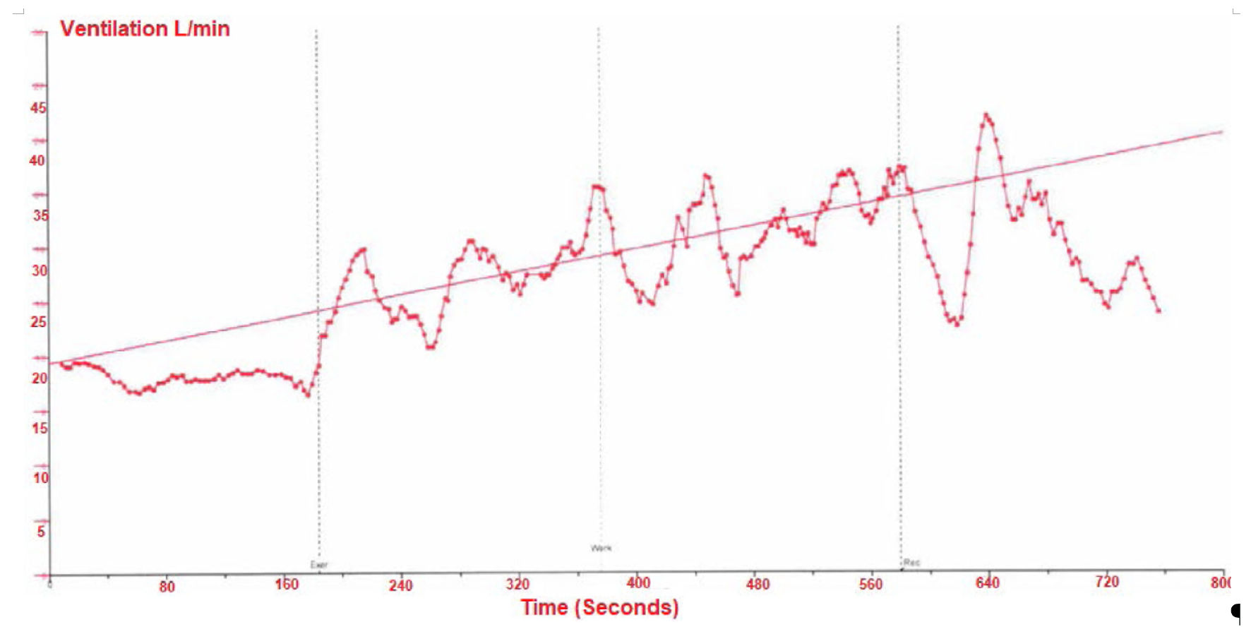 ![]() Click for large image | Figure 1. Exercise oscillatory ventilation (EOV). The length of an oscillation cycle in ventilation is defined as the time between two oscillations nadirs. Furthermore, oscillation amplitude is the difference between the peak ventilation of oscillation and the nadirs [19]. |